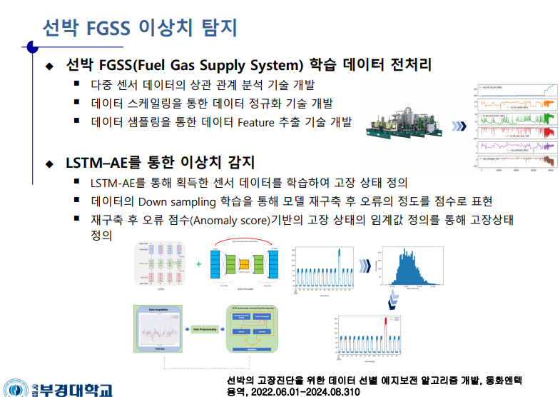 Research Project 수소충전소용 100kg/hr급 이오닉 피스톤 압축기 개발 (24.04.01-27.12.31) 조수기의 고장진단을 위한 예지보전 알고리즘 개발 (22.06-23.05) 기계학습을 이용한 스마트 팩토리에서의 고장 예지 알고리즘 개발 (17.03-20.02) Research Topic